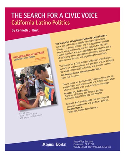 Download, print and distribute the order form for Ken Burt's The Search for a Civic Voice: California Latino Politics. Or order through Barnes and Noble or Amazon. |